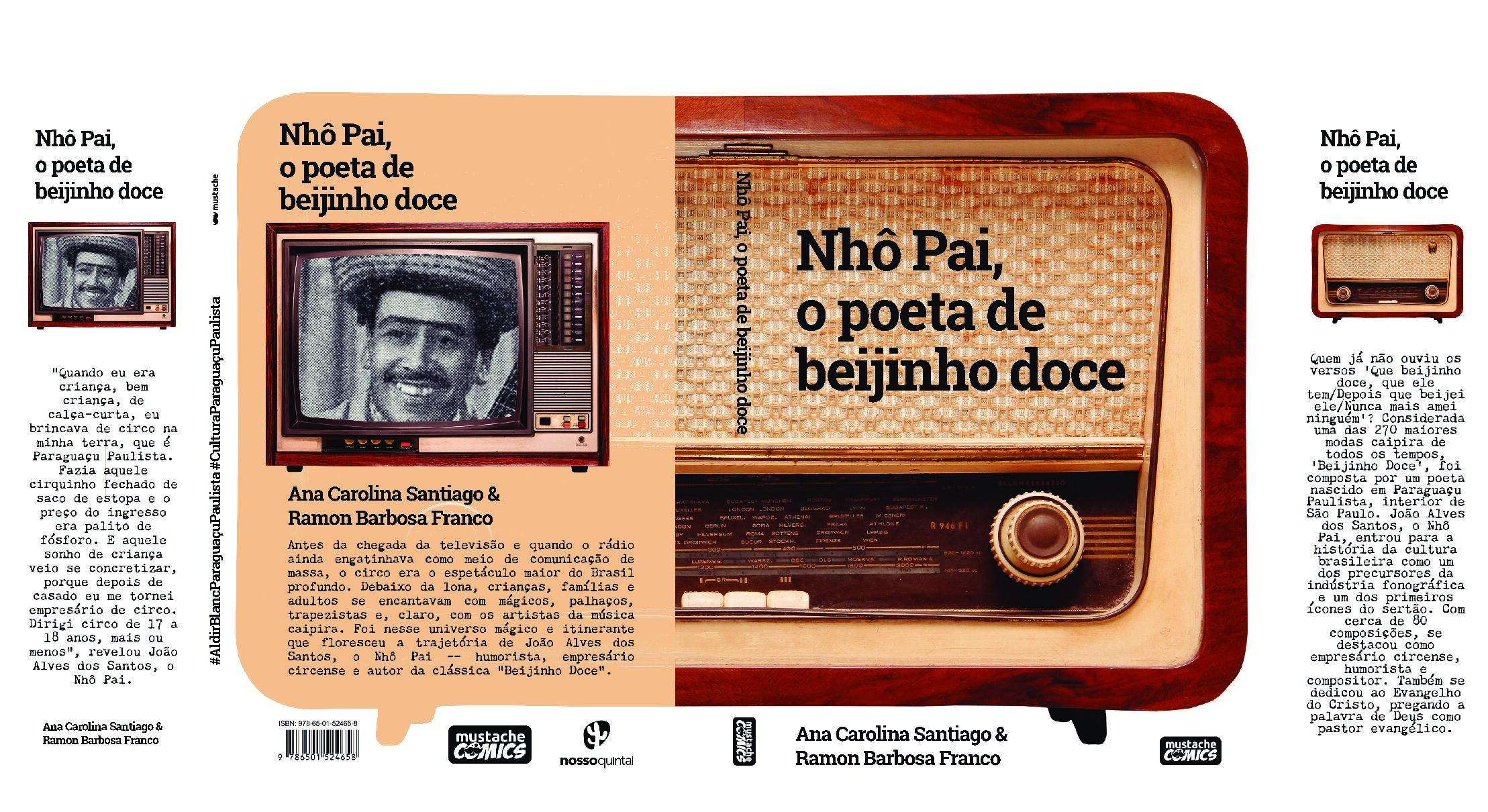 ‘Nhô Pai, poeta de Beijinho Doce’, de Ana Carolina Santiago e Ramon Barbosa Franco, foi publicado com recursos da Lei Aldir Blanc, com apoio da Prefeitura Municipal de Paraguaçu Paulista, Secretaria Municipal de Cultura de Paraguaçu Paulista, Ministério da Cultura e Governo Federal. O livro traz um ensaio fotográfico do repórter-fotográfico Alexandre de Souza, que realizou a direção fotográfica do livro. Editado por Tiago de Moraes das Chagas, da Mustache Comics, tem texto adicional do jornalista Fernando de Andrade e revisão da escritora e jornalista Ana Carolina Godoy.