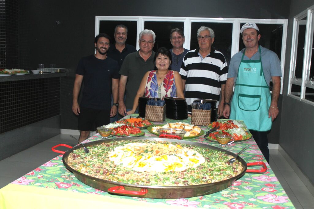 Associados da AEA Marília e familiares compareceram ao primeiro jantar gourmet de 2026 para prestigiar uma noite de gastronomia e integração. Organizado pela diretoria na noite de sexta-feira, dia 27 de fevereiro de 2026, o evento trouxe como chef convidado o empresário Adalberto Dezotti de Oliveira, da Matelar Móveis Planejados, que elaborou um prato típico da culinária mineira, o arroz com fraldinha. “A receita que preparei serve tranquilamente de 70 a 80 pessoas”, detalhou Adalberto. O preparo exigiu um planejamento detalhado que teve início ainda no final da tarde para que tudo estivesse pronto pontualmente às 20 horas.