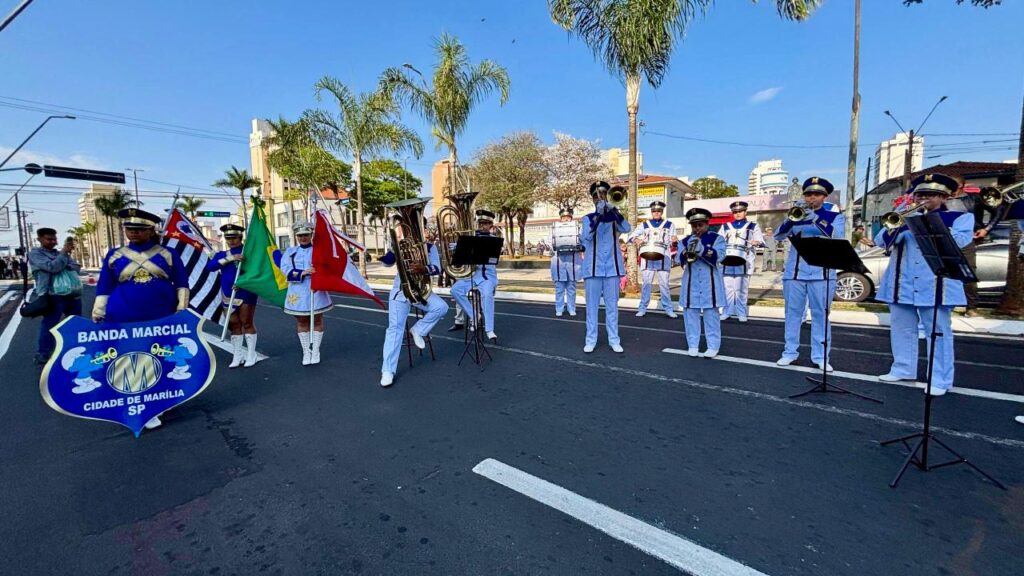 A Prefeitura de Marília realizou, na manhã deste domingo, dia 7 de setembro de 2025, solenidade em comemoração aos 203 anos da Independência do Brasil. Com início às 8h, o ato cívico ocorreu em frente à Prefeitura. Participaram da solenidade autoridades civis e militares. O prefeito em exercício, Rogério Alexandre da Graça, o Rogerinho, hasteou a bandeira de Marília. Já a bandeira do Estado de São Paulo foi hasteada pelo presidente da Câmara Municipal de Marília, vereador Danilo Bigeschi. Para a bandeira do Brasil, foi convidada para o hasteamento a major PM, Meire Andrea de Moraes, Coordenadora Operacional do 9º Batalhão de Polícia Militar do Estado de São Paulo.