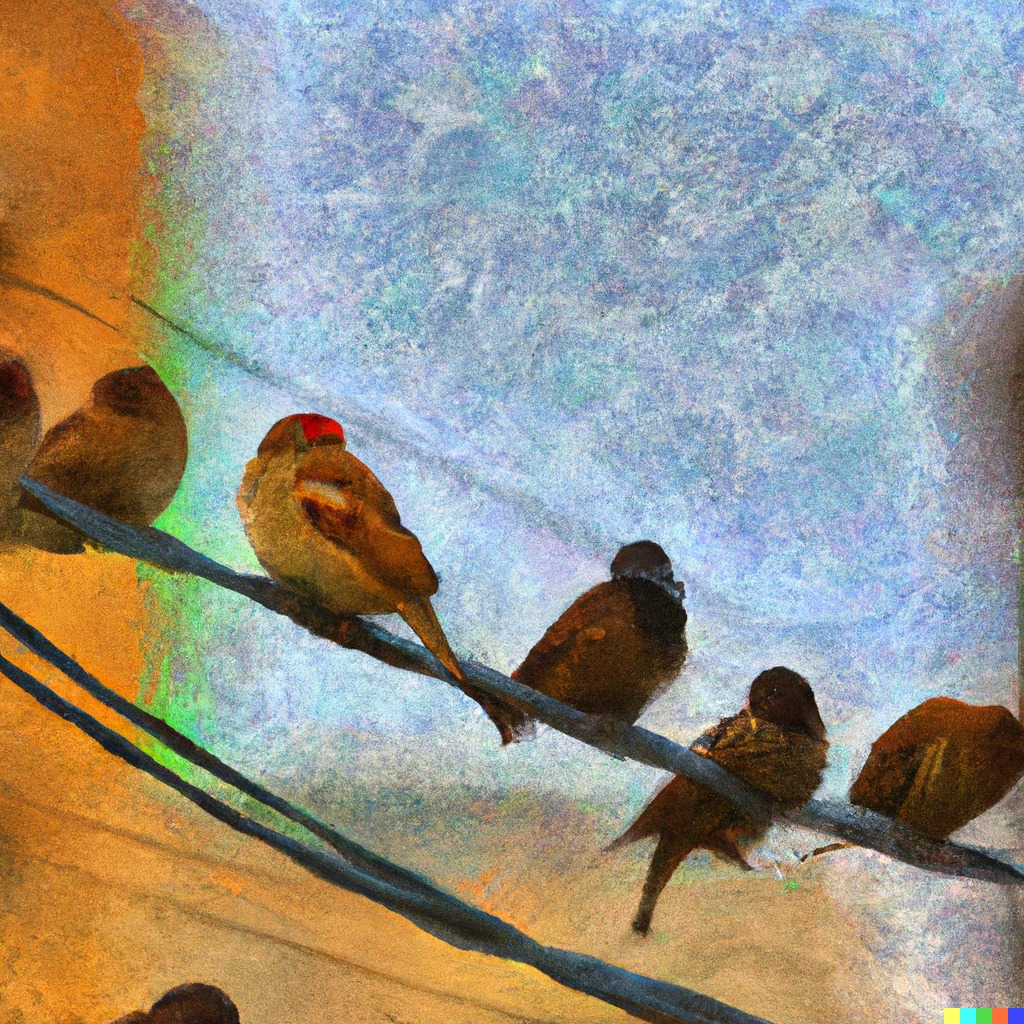 Aí, no gatilho lépido daquele motim, uma bomba estourou, e os pios clamaram “revolução! Revolução”; outros perceberam a gravidade do estrondo e aflitos piaram “represália! Represália! A guerra estourou!”, e voaram desertores, traidores, em frente aos olhos alucinados do pássaro vermelho que procurou ao lado os seus fiéis defensores, mas nada encontrou no espaço de fio telefônico. No alto voava o pombo que então havia perdido os óculos redondos, e no chão cozinhava no calor do concreto a desfalecida calopsita estupefata. Voou da janela em frente à conferência uma segunda biribinha, estalinho, bombinha de festa junina, e estourou polvorosa no poste próximo da Convenção dos Pássaros que, assim, teve seu fim decretado pelo abandono geral e imediato dos irmãos integrantes, vanguardistas, unidos sob mesma bandeira, e que impedia um homem comum de dormir durante a manhã de uma quinta-feira de um ano quente, fumegante e inabalável.
