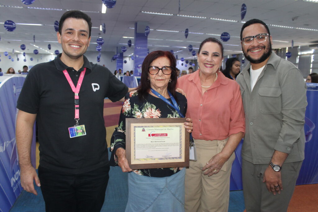 A dedicação de dona Maria Barros de Souza chamou a atenção não só da Paschoalotto, mas da comunidade de Marília. Ao realizar uma visita ao ambiente de trabalho da Paschoalotto, a vereadora Rossana Camacho, ativista da defesa dos direitos da mulher e da valorização feminina, foi apresentada à dona Maria e ficou admirada pela disposição. “Me informaram que a dona Maria era a operadora mais idosa em atividade aqui e isso me deixou muito feliz, entendi que seria muito justo que a Câmara a homenageiasse”, considerou a parlamentar municipal. Nesta quinta-feira, dia 14 de agosto de 2025, a vereadora Delegada Rossana Camacho, acompanhada da emissora TV Câmara, entregou para a operadora mais longeva da Paschoalotto o certificado de congratulações.