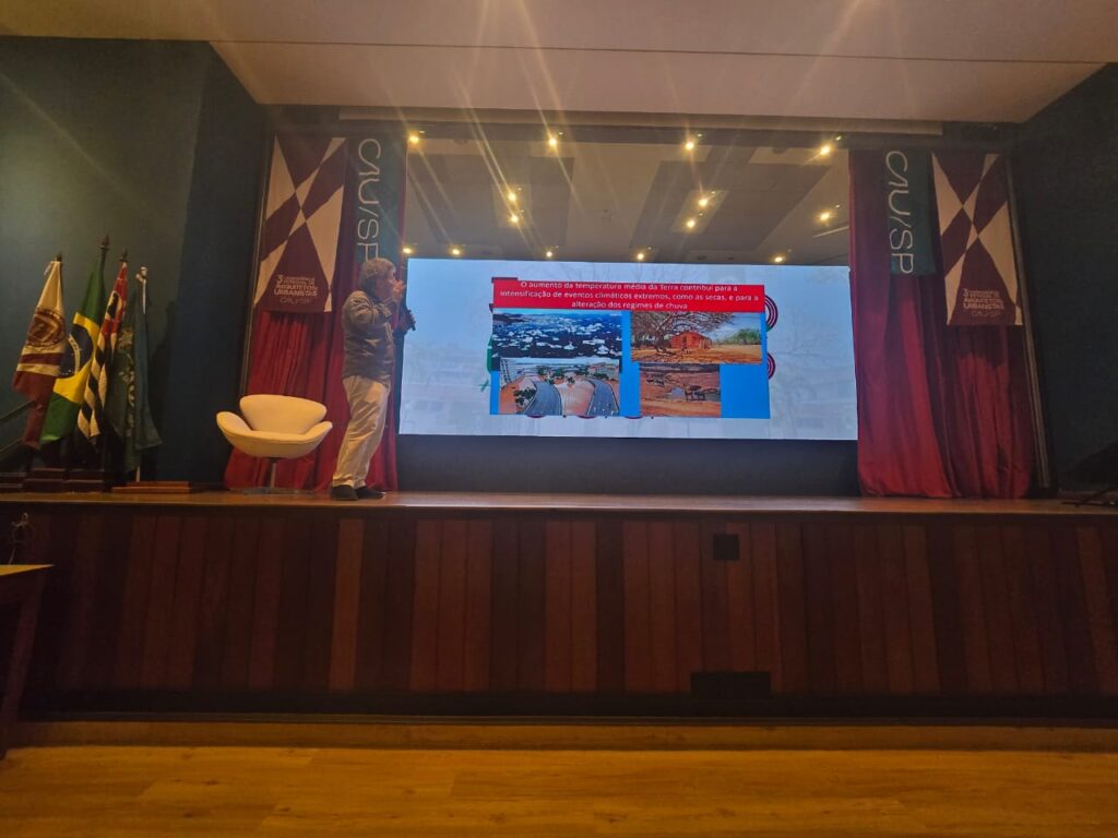 No encerramento, durante a palestra de Nabil Bonduki sobre os desafios urbanos, Érica Gasparini trouxe à tona a complexidade da gestão territorial frente à crise climática. A arquiteta alertou para o fenômeno do esvaziamento das áreas centrais em detrimento da expansão para zonas rurais, processo que compromete drasticamente a permeabilidade do solo.