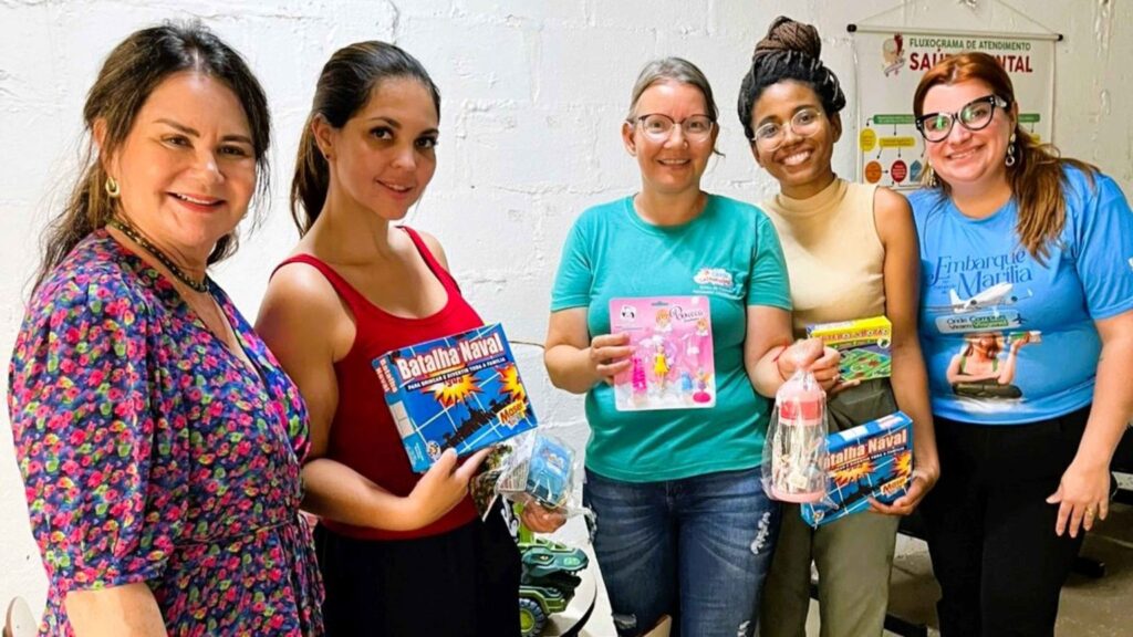 A diretoria da Associação Comercial e de Inovação de Marília fez a entrega de 95 brinquedos conseguidos na campanha “Árvore Encantada”, que fez parte das atividades desenvolvidas pela entidade no período natalino, quando qualquer pessoa podia doar brinquedos a serem entregues a crianças carentes, que em 2025 beneficiou o Centro de Atenção Psicossocial Infanto-Juvenil de Marília, que atende crianças e adolescentes com até 18 anos de idade com transtornos mentais graves, oferecendo acolhimento, atendimento individual e em grupo, oficinas terapêuticas e acompanhamento multiprofissional (psicólogo, psiquiatra, enfermeiro, entre outros), sendo um serviço público da rede SUS. “Fizemos a entrega e soube como os jovens gostaram muito de nossa iniciativa”, disse o presidente da associação comercial mariliense, Carlos Francisco Bitencourt Jorge, ao ser representado pela vice-presidente, Valéria Cristina Tamião de Oliveira.
