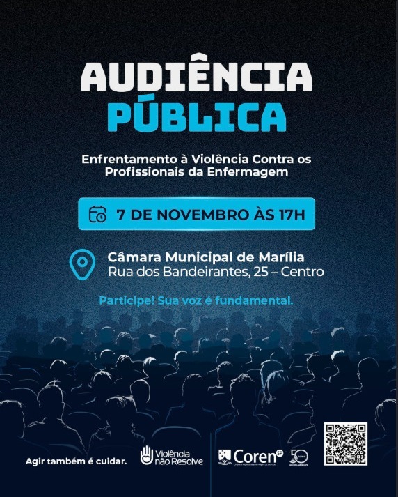 O Conselho Regional de Enfermagem de São Paulo (Coren-SP) e a Câmara Municipal de Marília promovem nesta sexta-feira, dia 7 de novembro de 2025, às 17h, uma audiência pública dedicada ao enfrentamento da violência contra profissionais de enfermagem na região. O encontro, que é aberto à população, tem como principal objetivo incentivar um diálogo construtivo e a formulação de medidas eficazes que garantam a proteção e a valorização de uma das categorias essenciais para a saúde pública.