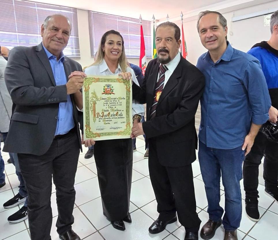 Para o diretor do Deinter-4, Ricardo Martines, que já atuou no município, o título é merecido e um agradecimento não só de Marília e da Câmara a José Carlos Costa, mas também da instituição. “É uma lenda na Polícia Civil, que se dedicou com muita honra à instituição e à cidade, colocando muitas vezes sua vida em risco, e deixa uma história, um legado. Esta é a maior honraria que uma pessoa não natural da cidade pode receber e para mim é um prazer participar deste momento. Aproveito para agradecer o brilhante trabalho que vocês [policiais] desenvolvem na cidade”.