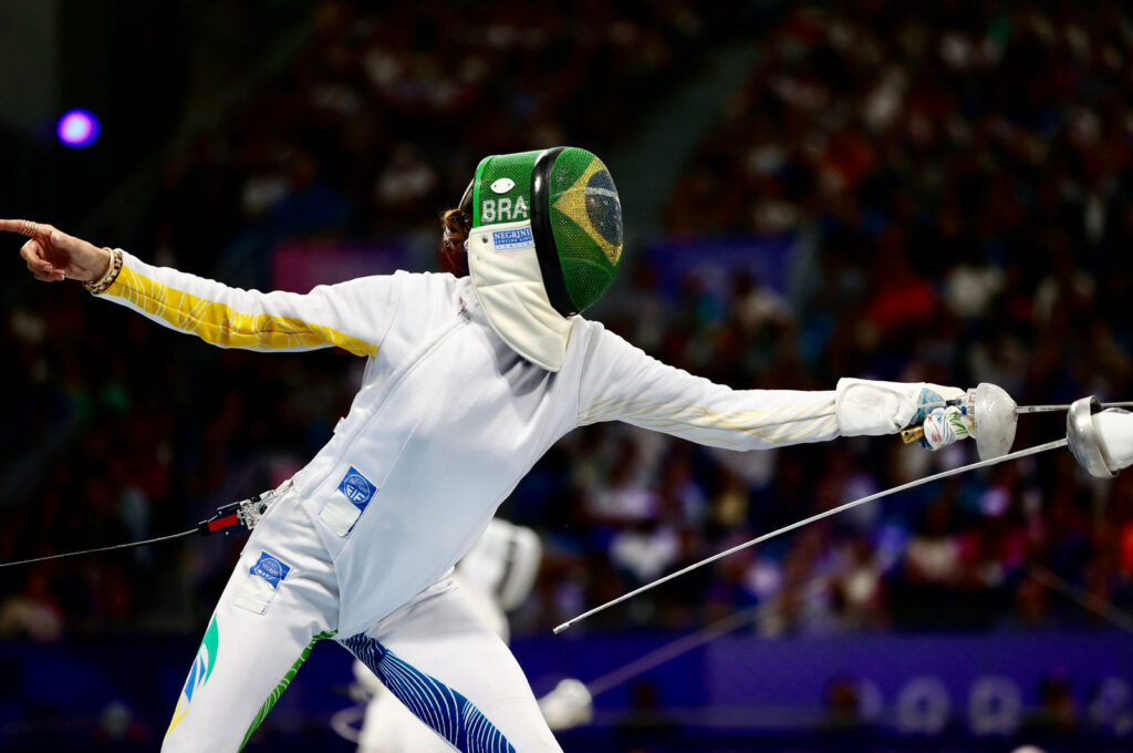A esgrimista Nathalie Moellhausen foi derrotada na estreia da competição de espada dos Jogos Olímpicos Paris 2024 neste sábado, dia 27, por 15 a 11 pela canadense Xiao Ruien.