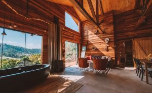 Localizada em Santo Antônio do Pinhal (a 603 quilômetros de Marília) próxima de várias cachoeiras, a Cabana Barn conta com banheira interna com hidro e cama King size. Já a área externa conta com 2 banheiras de imersão com vista e ducha, além de churrasqueira, fogueira e sauna seca. A pequena cozinha é bem equipada e possui utensílios para que você possa preparar um delicioso café da manhã e aproveitá-lo apreciando a vista incrível.