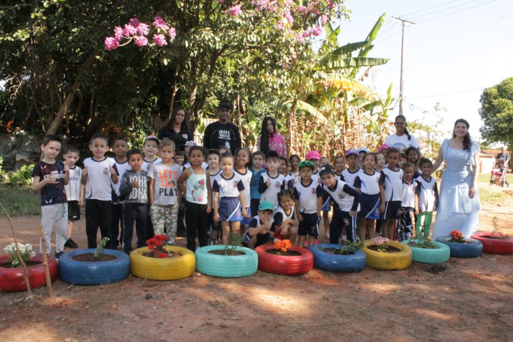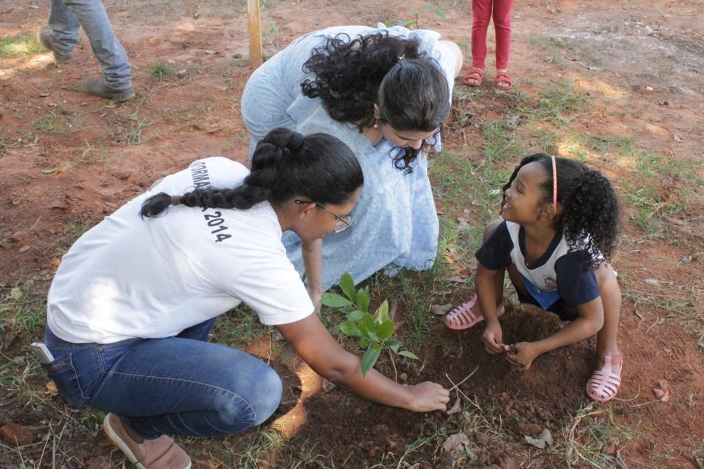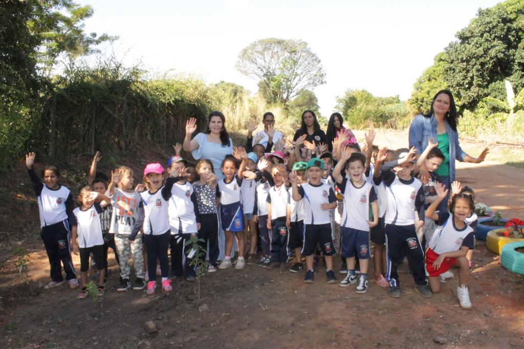 Crianças da Emei Branca de Neve plantam 50 árvores nativas e frutíferas em área de recuperação ambiental em Padre Nóbrega