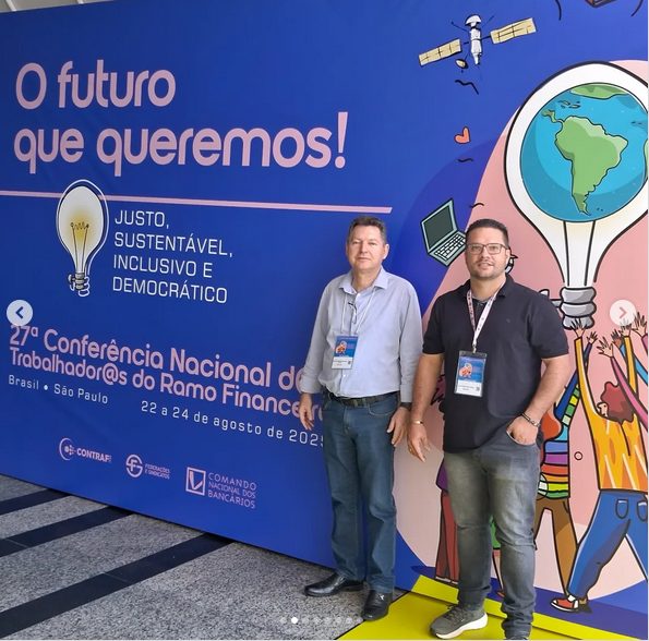 A diretoria do Sindicato dos Bancários de Marília e Região esteve representada pelo presidente Edilson Julian e pelo diretor Alan Gavan durante a 27ª Conferência Nacional das Bancárias e Bancários, realizada em São Paulo, entre sexta-feira, dia 22 de agosto, e domingo, dia 24 de agosto. Este encontro foi precedido por debates locais e regionais, a exemplo das plenárias realizadas em Marília no começo de julho, durante a Conferência dos Bancários dos Estados de São Paulo e Mato Grosso do Sul.