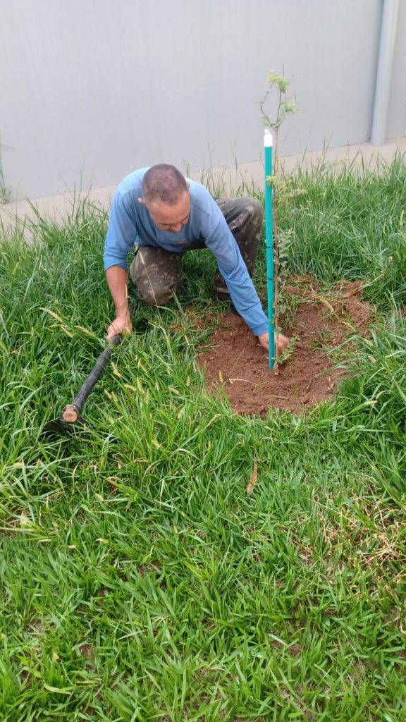 Após plantio pela equipe do Programa Município Verde Azul, as árvores receberam a manutenção adequada para o crescimento saudável