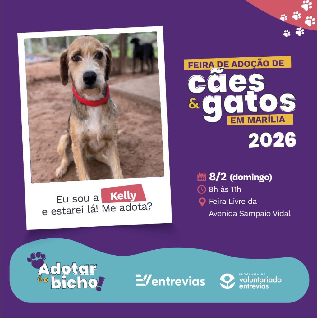 A Entrevias Concessionária de Rodovias promove, neste domingo, dia 8 de fevereiro de 2026, a primeira edição da Feira de Adoção de Cães e Gatos do programa Adotar é o Bicho. O evento será realizado durante a Feira Livre da Avenida Sampaio Vidal, em Marília, das 8h às 11h. Todos os pets disponíveis para adoção foram resgatados pelas equipes da concessionária nas rodovias administradas pela empresa, onde estavam em situação de risco.