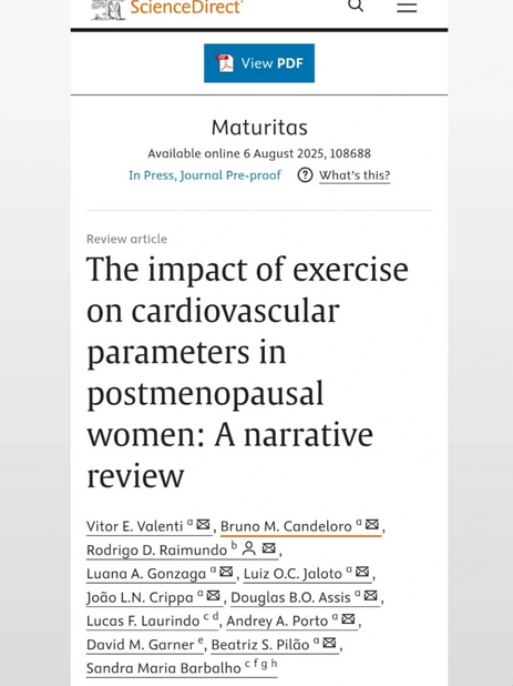 A pesquisa contou com a colaboração de outras instituições, como a Unimar, a Faculdade de Medicina do ABC (FMABC) e a Oxford Brookes University (Reino Unido). O artigo completo, que é uma revisão narrativa sobre o impacto do exercício nos parâmetros cardiovasculares em mulheres na pós-menopausa, está disponível para consulta. Valenti brincou em sua publicação que, se a pesquisa não mudar o mundo, pelo menos justifica “as olheiras e o consumo exagerado de café”.