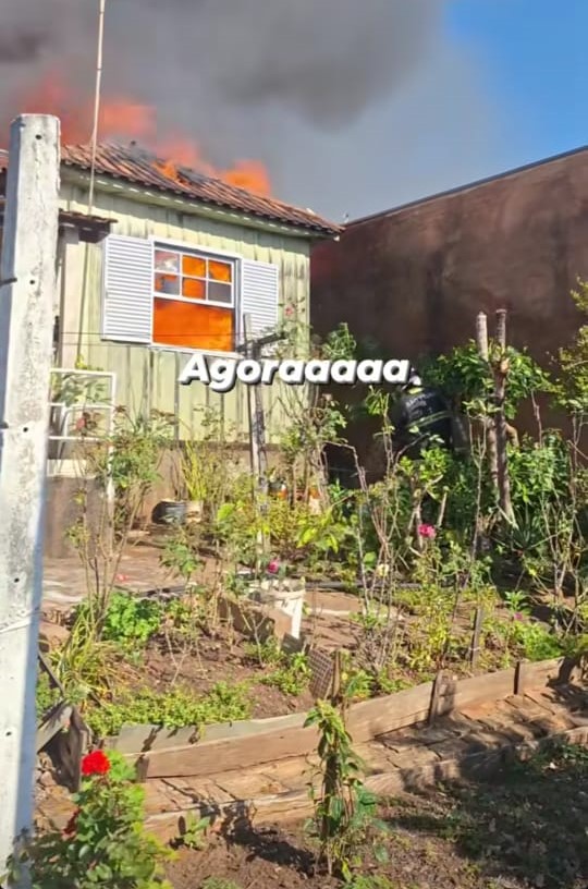 Fogo destrói casa de madeira na avenida Pedro de Toledo, em Marília. Incêndio teria sido provocado por vazamento de botijão de gás
