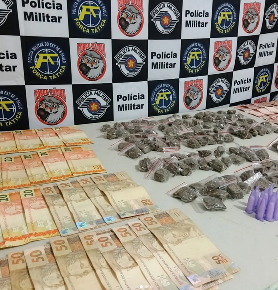 A ocorrência foi registrada por volta das 19h35 do último domingo, dia 5 de abril, enquanto o patrulhamento percorria a Vila Barros. Ao notarem a aproximação das viaturas, diversos indivíduos que apresentavam atitude suspeita iniciaram uma fuga em direção ao interior da comunidade local. Um dos envolvidos, que carregava uma mochila, acabou deixando o objeto cair durante o percurso antes de ser alcançado dentro de um imóvel. Na revista pessoal, os policiais encontraram um aparelho celular e a importância de R$ 4 mil em notas diversas, acondicionada em uma pochete presa ao corpo do abordado.