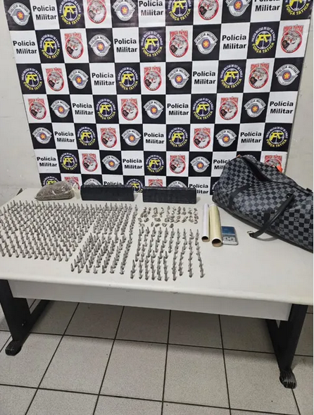 No local da diligência, os policiais militares e agentes do GAECO localizaram uma expressiva quantidade de substâncias ilícitas, totalizando aproximadamente 1,882 kg de maconha e 0,447 kg de cocaína. Além dos entorpecentes, foram apreendidos diversos materiais utilizados na comercialização das drogas, incluindo uma balança de precisão, apetrechos para embalagem e papéis com anotações diversas relacionadas à contabilidade do tráfico. A operação também resultou no recolhimento de quatro telefones celulares, dois pen drives e dois cartões de memória, que devem passar por perícia.