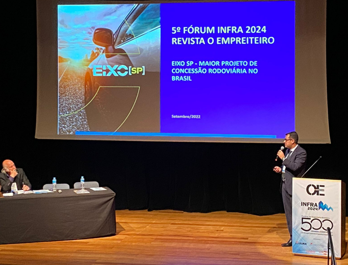 A Eixo SP esteve presente no Forum Infra 2024, realizado na tarde desta terça-feira, 27, em São Paulo, e que reuniu autoridades em diferentes frentes da engenharia brasileira. O evento, que também marcou a premiação do Ranking de Engenharia Brasileira, incluiu na programação a palestra do diretor de Engenharia da Concessionária, Robinson Ávila, convidado a falar sobre a maior concessão rodoviária do país.