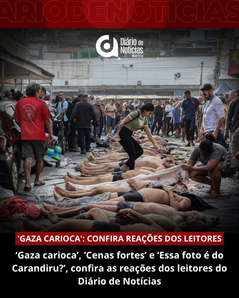 Marília reagiu com indignação à maior ação letal da polícia do Rio de Janeiro, que, até agora, estaria contabilizando mais de 100 mortos – entre eles 4 agentes da Polícia Militar e da Polícia Civil daquele Estado. ‘Gaza carioca’ escreveu um leitor no post publicado pelo Diário de Notícias Marília no perfil oficial do jornal no Instagram. Outra leitora questionou ‘Qual a necessidade de tirar as roupas e tirarem as fotos?’.
