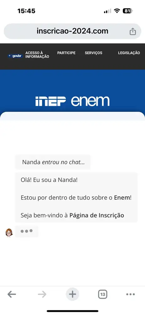 “Eu olhei e estava direitinho o design, o layout. A página era igual, estava escrito ‘Inscrição Enem 2024’, tinha o robozinho (chat de inteligência artificial) que ensina o passo a passo”, lembra Mônica, destacando as semelhanças.