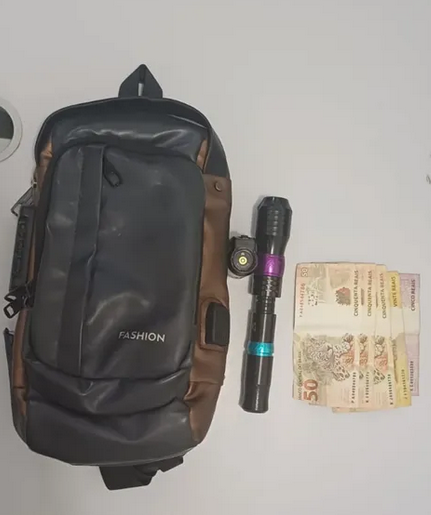 Com o indivíduo, os policiais recuperaram uma bolsa contendo máquinas de tatuagem e a quantia de R$ 175,00 em dinheiro, itens que haviam sido subtraídos da vítima. Ao verificarem os dados pessoais do abordado nos sistemas criminais, os agentes constataram que havia um mandado de prisão pendente, com uma pena de 34 anos de reclusão em regime fechado a ser cumprida.
