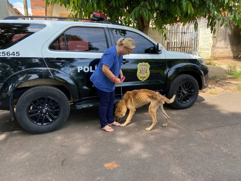 O cachorro foi encaminhado para tratamento em estado grave e corre risco de óbito.