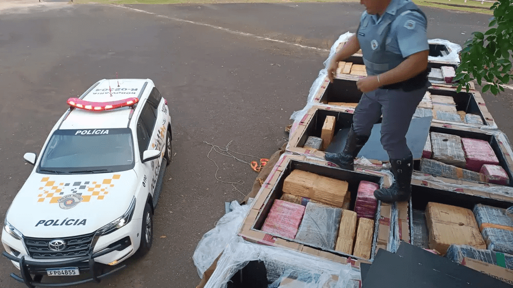 Na noite desta segunda-feira (18), um motorista de 48 anos foi preso em Assis (SP) por transportar uma grande quantidade de maconha. A droga foi encontrada escondida no meio da carga de caixas de leite de um caminhão que saiu de Cascavel (PR) e tinha como destino a capital paulista. A apreensão ocorreu no pátio de um posto de combustíveis localizado no km 407 da Rodovia Miguel Jubran.