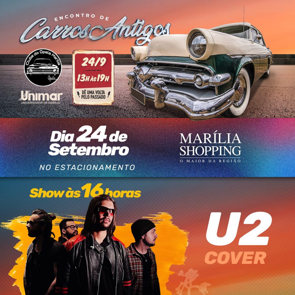 Além de reunir os amantes dessas raridades, durante o encontro de carros antigos, o Marília Shopping irá receber o show da The Hype U2 Cover, que presta uma homenagem a essa banda atemporal que desde sua fundação expressa em suas músicas a relevância de causas sociais e políticas presentes em nosso mundo: o U2. Os fãs poderão curtir um repertório variado com os grandes sucessos da banda irlandesa.