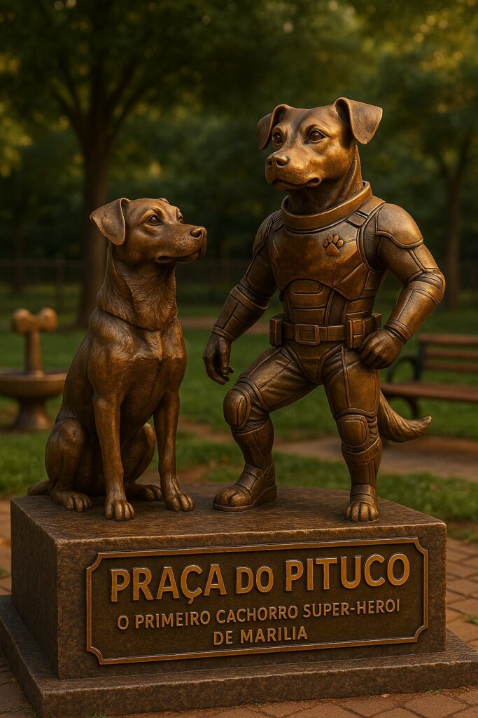 A área em que os doguinhos dos irmãos Conversani brincam ao menos duas vezes por dia será, em breve, transformada no primeiro espaço PET de Marília. Aprovada recentemente na Câmara Municipal de Marília, a proposta é defendida pela vereadora Professora Daniela (PL), que vem realizando inclusive a interlocução com o Poder Executivo, através de reuniões sobre o assunto com o vice-prefeito Rogério Alexandre da Graça, o Rogerinho (PP) e o chefe de gabinete Rafael Goro. A iniciativa vem contando com apoio do próprio prefeito Vinicius Camarinha (PSDB) e da iniciativa privada, através da construtora Bild de Marília. Conforme já declarou a parlamentar, que é vice-presidente do Poder Legislativo, a praça PET receberá o nome do primeiro cachorrinho super-herói de Marília, o Pituco. Além de inspirar a série de HQs ‘Radius’, onde o viralatinha se tornou um valente personagem, Pituco agora foi eternizado em livro: ‘Quatro Patas, a história de Pituco’, escrito por seu tutor Tiago de Moraes das Chagas em parceria com o jornalista Ramon Barbosa Franco. O livro será lançado no próximo dia 14 de junho, sábado, às 14 horas, no escritório de negócios da Bild, com show do Duo Juriti. Os instrumentalistas do Duo Juriti compuseram uma música em homenagem ao cachorrinho e irão apresentar o som em primeira mão.