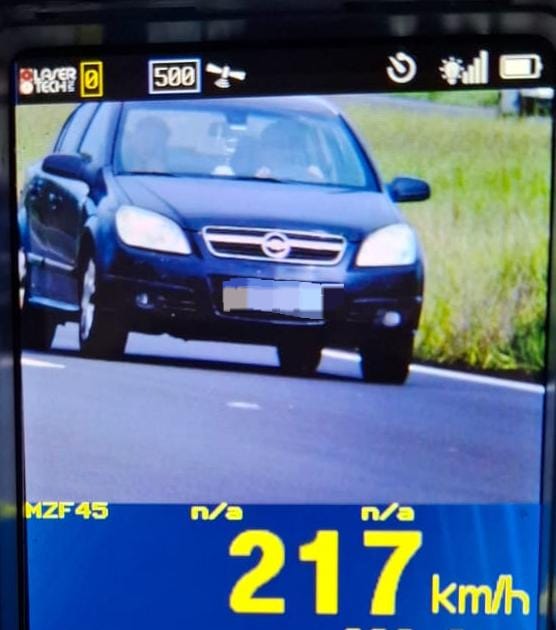 A Polícia Militar Rodoviária registrou um flagrante de alta periculosidade na tarde da última sexta-feira, dia 13 de fevereiro, no município de Santa Cruz do Rio Pardo, na região de Ourinhos. Durante fiscalização de velocidade com radar portátil no quilômetro 312 da rodovia Castello Branco (SP-280), os agentes detectaram um automóvel trafegando a 217 km/h. A velocidade aferida é quase o dobro do limite regulamentado para o trecho, que é de 120 km/h, configurando um risco severo à segurança viária em um dos períodos de maior fluxo de veículos devido ao feriado prolongado.