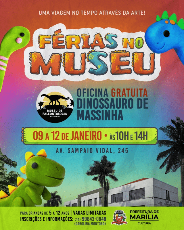 O Museu de Paleontologia de Marília, receberá durante as férias de Janeiro, oficina de dinossauros de massinha.