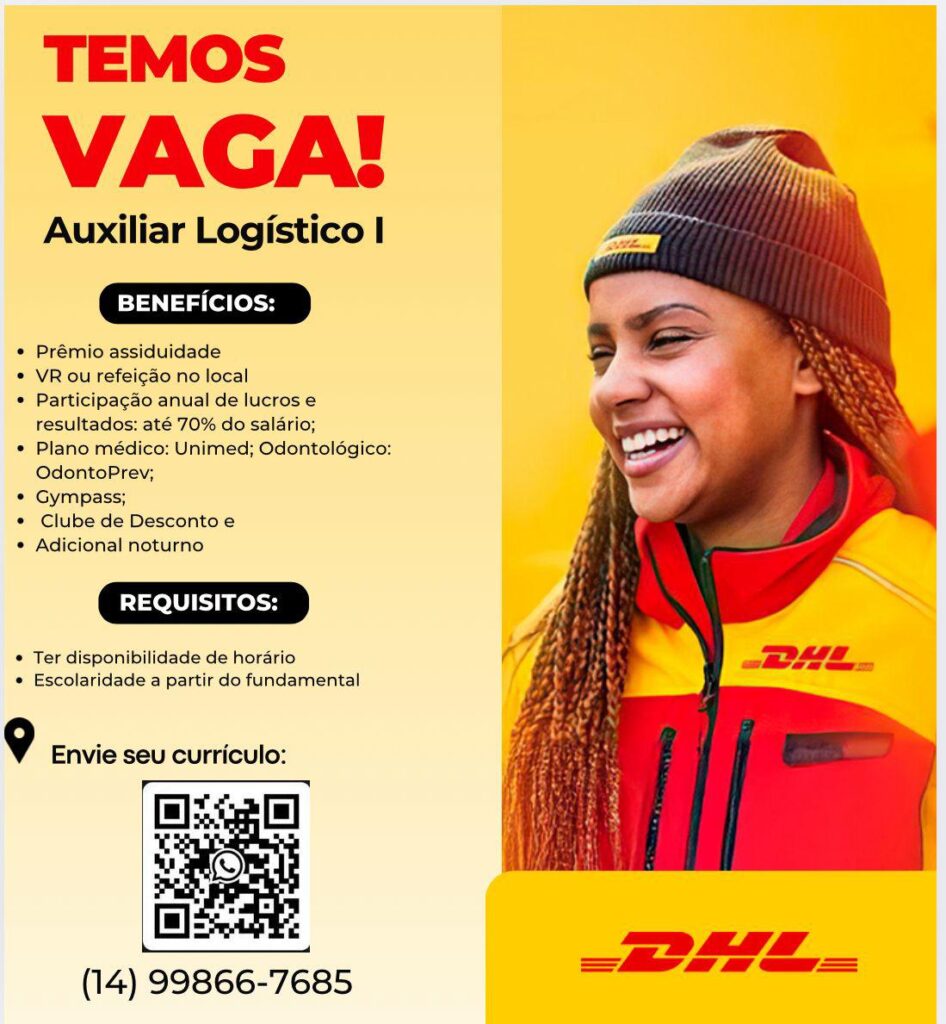 A Prefeitura Municipal de Marília e a Secretaria Municipal do Trabalho, Turismo e Desenvolvimento Econômico comunicam que nesta terça-feira, dia 28 de outubro de 2025, a DHL – uma das maiores companhias de logística do mundo – está realizando desde às 8h30 mutirão de emprego na cidade para vagas de auxiliar logístico I. O processo seletivo está sendo realizado na unidade da DHL Marília, localizada na avenida Eugênio Coneglian, nº 3550 – Distrito Industrial. As senhas estão sendo distribuídas no local.