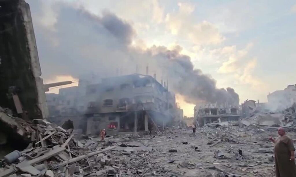 Em vídeo enviado à imprensa, Rabee conta que os bombardeios destruíram o prédio onde o primo dele vivia com a família, na cidade de Jabalia.