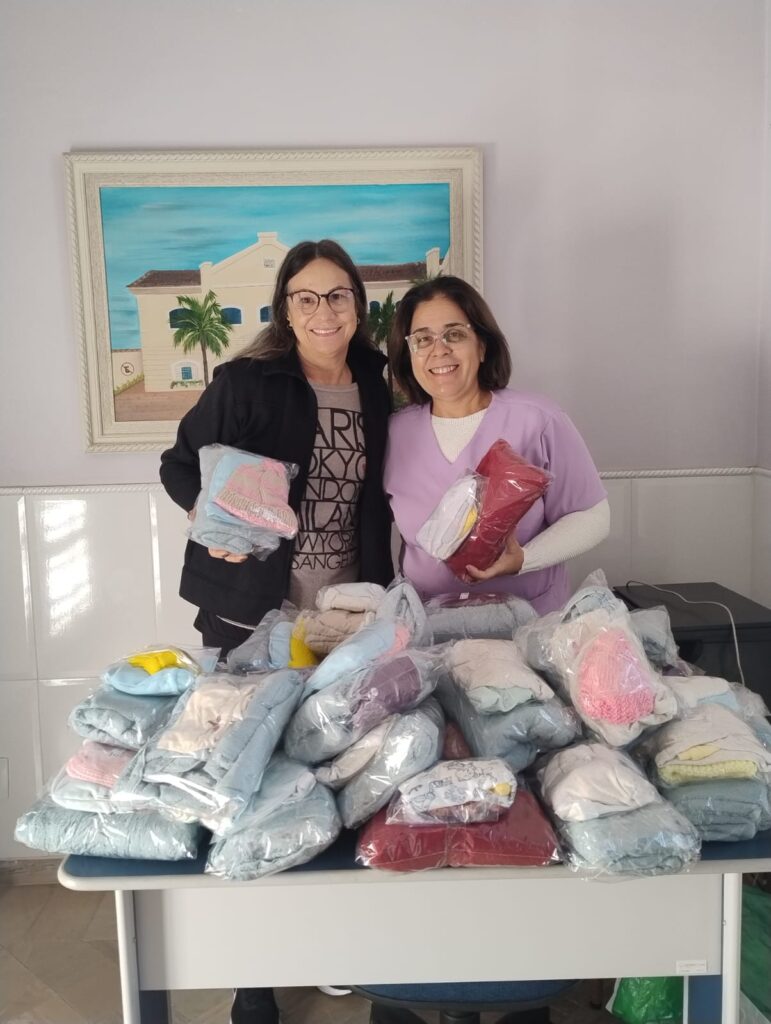 A cada visita dos Anjos da Luz, novos kits de inverno, confeccionados pelas voluntárias, são deixados para as mamães e seus bebês