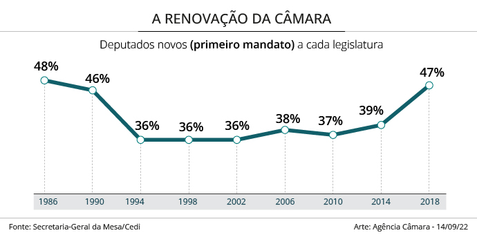Em entrevista ao programa Painel Eletrônico, da Rádio Câmara, o consultor político Antônio Augusto de Queiroz afirmou que a reeleição será alta porque 88% dos 513 deputados atuais, ou 446 parlamentares, são candidatos: