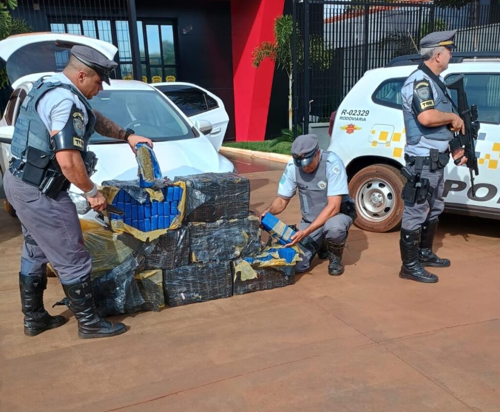 O veículo foi finalmente abordado na Estrada Municipal IBM-352, no quilômetro 1. Durante a vistoria veicular, os agentes localizaram 275 tabletes de maconha, que somaram o peso total de 208,370 quilos.