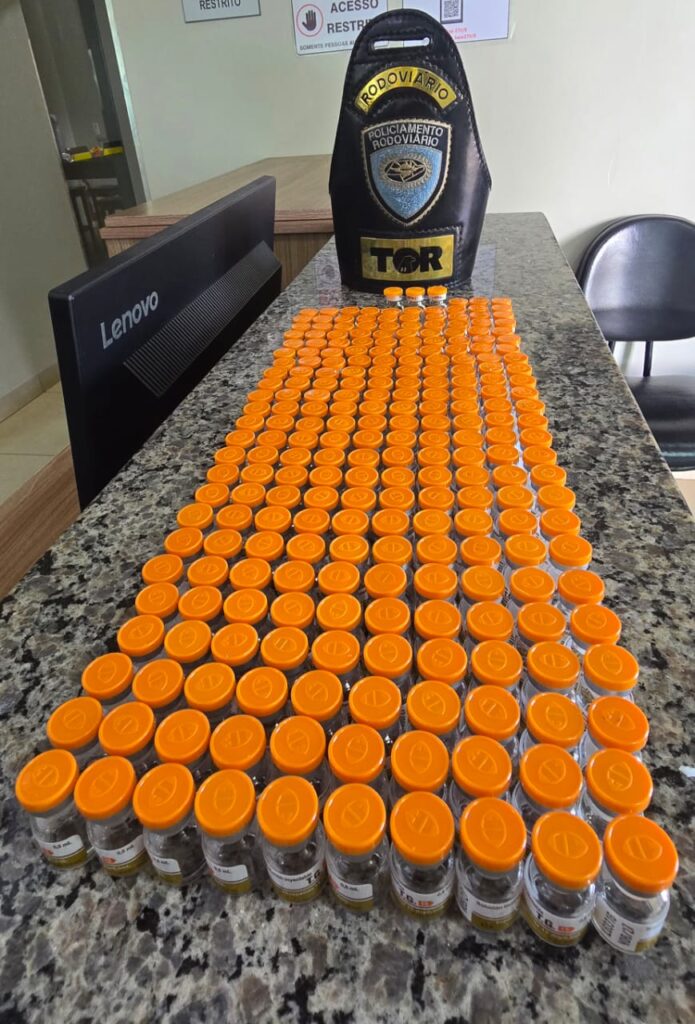 O flagrante foi registrado às 10h40 de ontem, domingo, dia 18 de janeiro, no quilômetro 445 da rodovia Raposo Tavares (SP-270), em Assis, a 80 quilômetros de Marília. Ao vistoriarem o salão de passageiros, os policiais localizaram 246 ampolas de Tirzepatida — medicamento comercializado como Mounjaro — e 20 frascos de perfumes importados ocultos nos acessórios de viagem da passageira que ocupava a poltrona 27. Estima-se que apenas os itens encontrados com a detida representem um prejuízo de quase R$150.000,00 ao crime organizado.