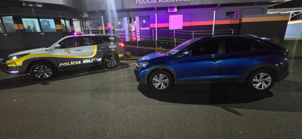 Policiais Militares do Tático Ostensivo Rodoviário (TOR) prenderam um homem de 40 anos e recuperaram um veículo roubado na noite de quarta-feira (7), na rodovia Orlando Quagliato (SP-327), em Ourinhos. A intervenção ocorreu por volta das 21h10, no km 28,400, durante a fiscalização de rotina da Operação Impacto. O suspeito, que dirigia um VW/Nivus acompanhado de um passageiro, tentou ludibriar a equipe apresentando documentos falsos sobre a origem do automóvel.