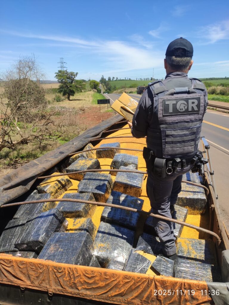 O Policiamento Rodoviário, em uma ação estratégica conjunta com a Força Integrada de Combate ao Crime Organizado (FICCO/SP), realizou a apreensão de uma grande quantidade de maconha na manhã desta quarta-feira, dia 19 de novembro de 2025, na rodovia Raposo Tavares (SP-270), em Bernardino de Campos, a 125 quilômetros de Marília. A operação, denominada RENOE/Consciência Negra, teve como alvo um caminhão Scania/R113 que tracionava dois semirreboques Randon, abordado por equipes do Tático Ostensivo Rodoviário (TOR).