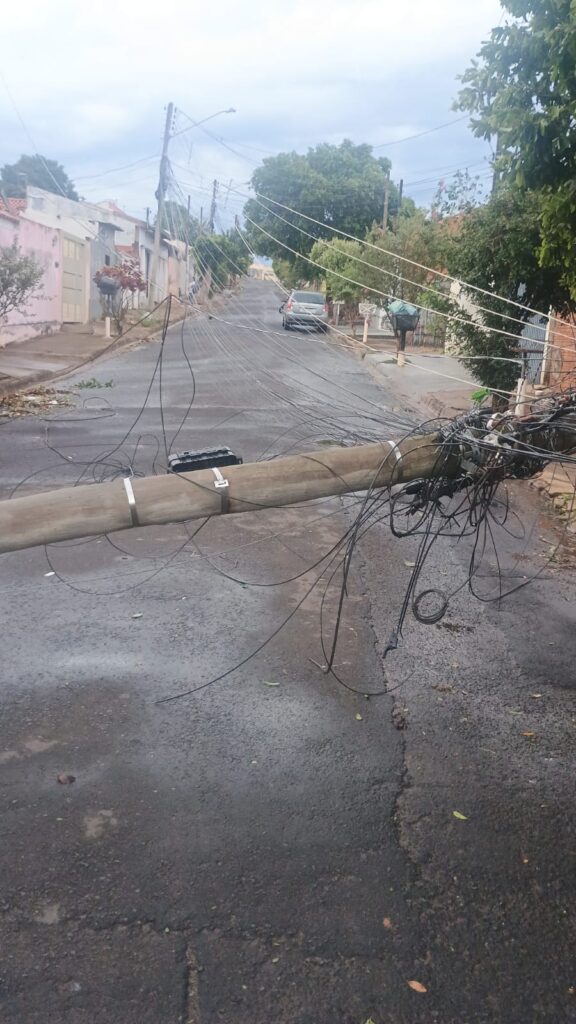 Com rajadas de ventos de até 120 quilômetros por hora, a tempestade de segunda ainda causa transtornos no Município. Além de árvores caídas, destelhamentos e falta de energia, um poste tombou numa rua entre os bairros Jânio Quadros e Alcides Matiuzzi, na zona Norte.