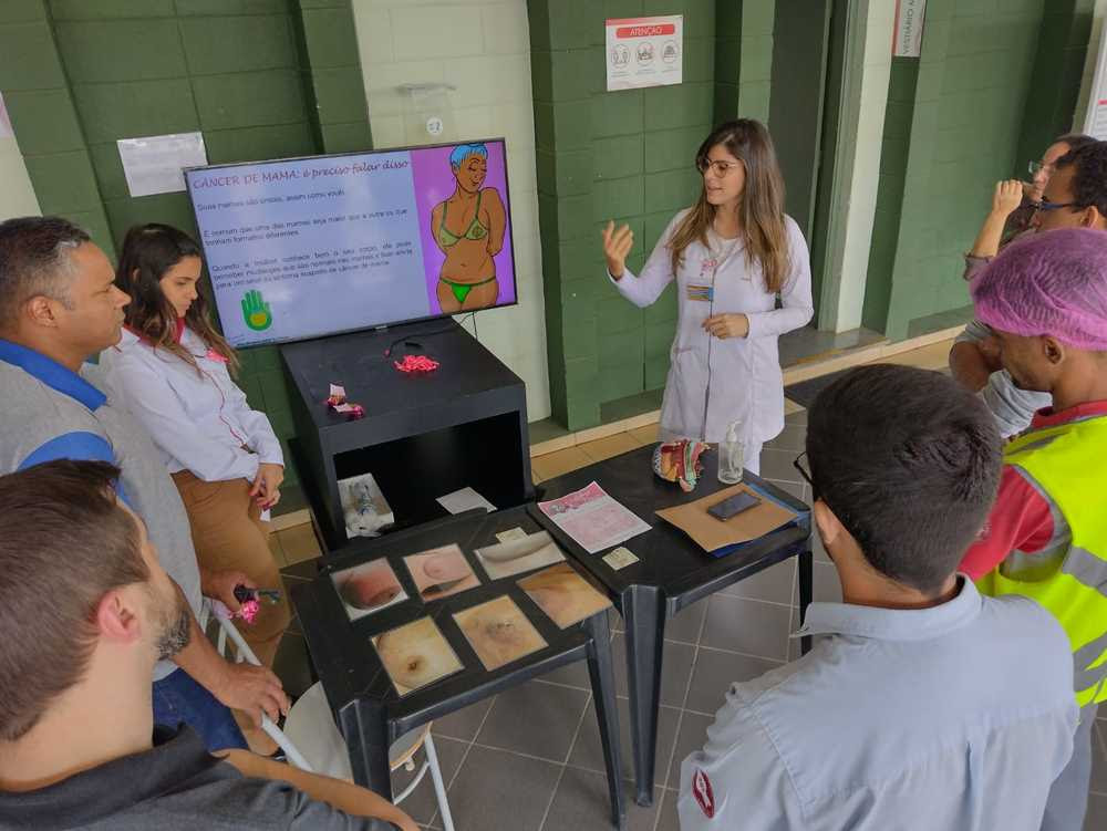 Vídeo com informações sobre o Outubro Rosa e imagens de mamas com alterações foram exibidos. A importância de se fazer o autoexame e de procurar um médico em caso de alguma anormalidade na mama foram passados aos colaboradores da Spiltag, que também puderam tirar suas dúvidas.