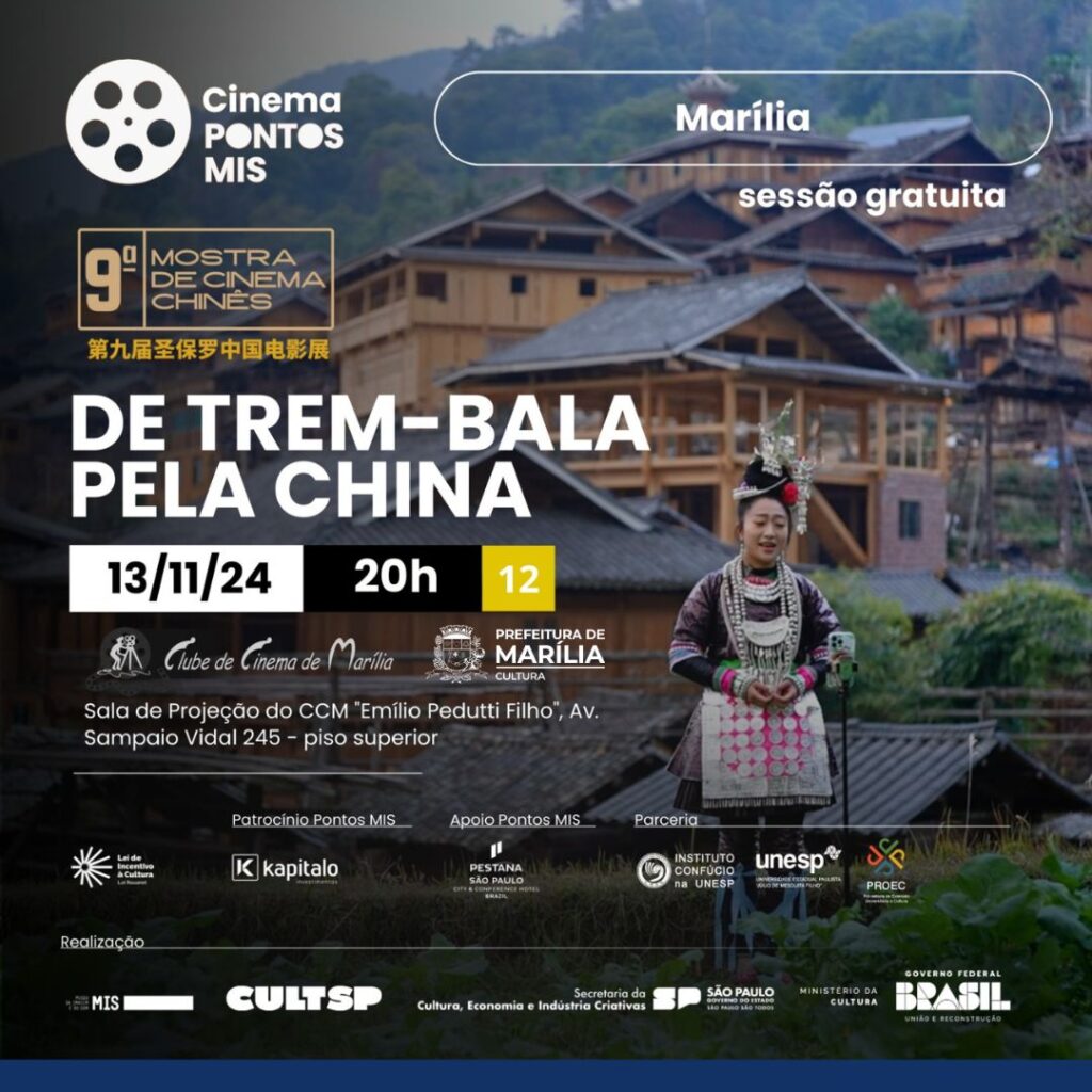 A Secretaria Municipal da Cultura de Marília, em parceria com o Museu da Imagem e do Som de São Paulo e o Clube de Cinema de Marília (CCM), promove a partir da próxima semana cinco sessões com obras cinematográficas da China. A 9ª Mostra de Cinema Chinês acontece em Marília entre os dias 12 e 17 de novembro, na Sala Municipal de Projeção do CCM ‘Emílio Pedutti Filho’, no complexo cultural ‘Braz Alécio’, avenida Sampaio Vidal, nº 245, piso superior – entrada pelo Museu de Paleontologia. Todas as sessões da mostra chinesa serão gratuitas.