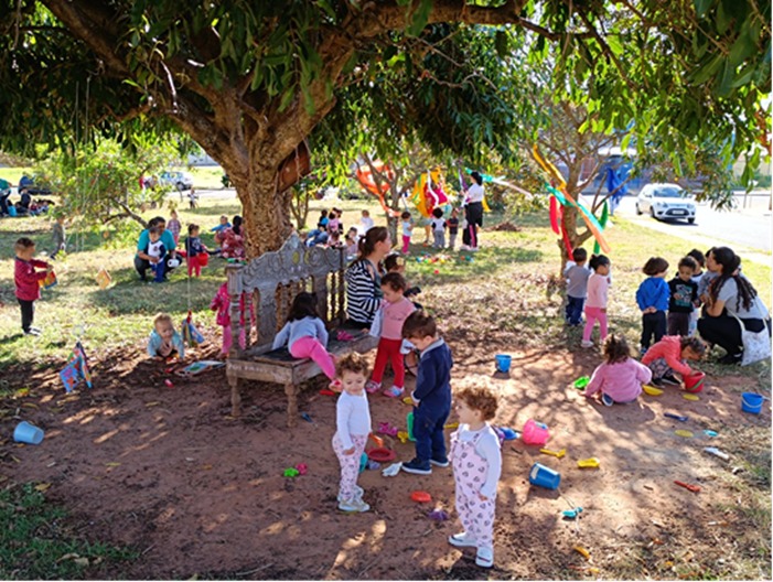 Ao longo da semana as unidades escolares elaboraram sua programação vivenciando o poder do brincar na natureza, apreciando suas paisagens, sons, cheiros e elementos naturais. O brincar livre permite que a criança perceba seus limites e possibilidades, se relacione e se expresse, garantindo ricos momentos para brincar longe das telas, como pontuou a supervisora da Educação Básica Karina Carrião.