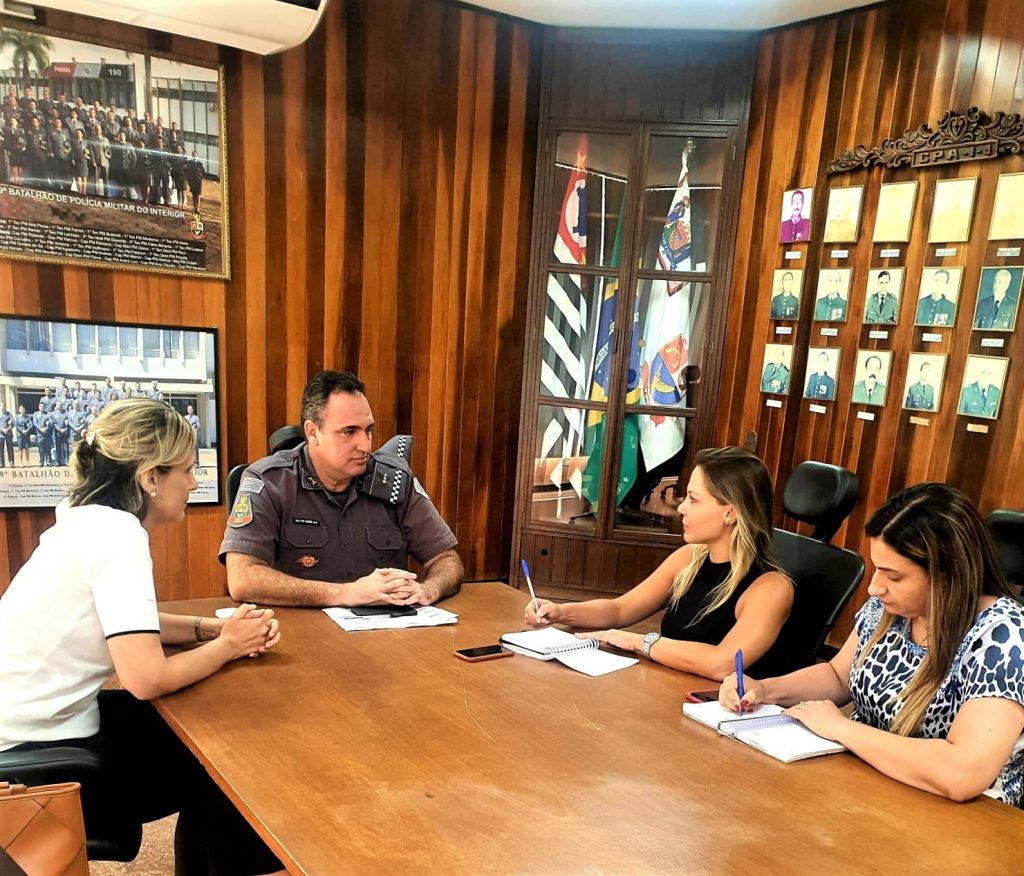 O comando da Polícia Militar (PM) em Marília e a Secretaria Municipal de Educação realizaram na quinta-feira, dia 13 de abril, reunião estratégica para traçar o plano de reforço no trabalho das rondas escolares e nas medidas de proteção de todas as escolas da rede municipal de ensino. O Município esteve representado pela secretária-adjunta da Educação Renata Guedes do Nascimento, que na ocasião representou o secretário municipal, professor Helter Bochi. O comandante do 9º Batalhão de Polícia Militar do Interior (9º BPM/I), tenente-coronel Alexandre Espindola Cardoso Ledo, conduziu a reunião de trabalho acompanhado pelos oficiais PM major André Luiz Collado, subcomandante do batalhão, e capitão Ana Cláudia Mathias Oliveira, oficial coordenadora operacional de todo o policiamento militar.