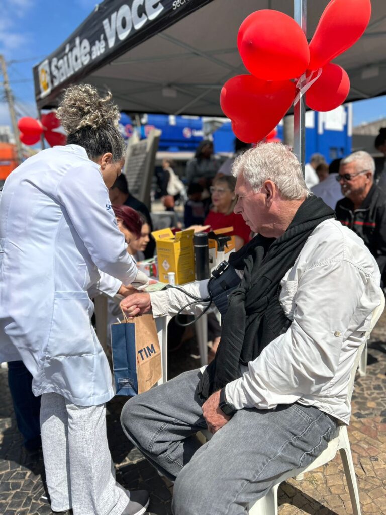 Ação realizada na área central teve atividades de aferição da pressão arterial, testes de glicemia e a distribuição de panfletos com orientações para a população