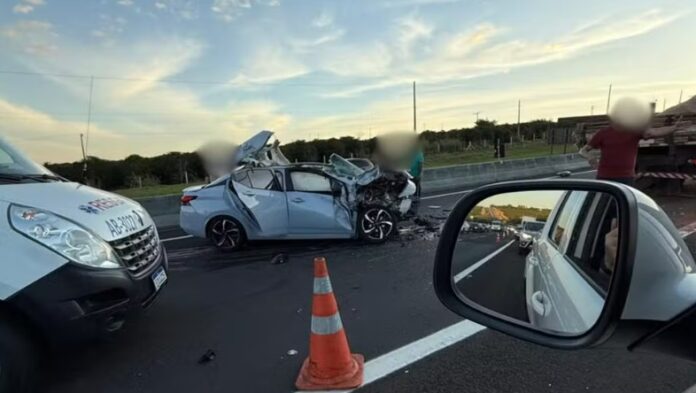 O incidente ocorreu por volta das 17h, quando o condutor de um carro colidiu violentamente na traseira de um caminhão que seguia no mesmo sentido. Conforme o boletim de ocorrência registrado pela Polícia Rodoviária no local, o impacto foi tão forte que ambos os veículos atravessaram a rodovia, interditando completamente a pista.