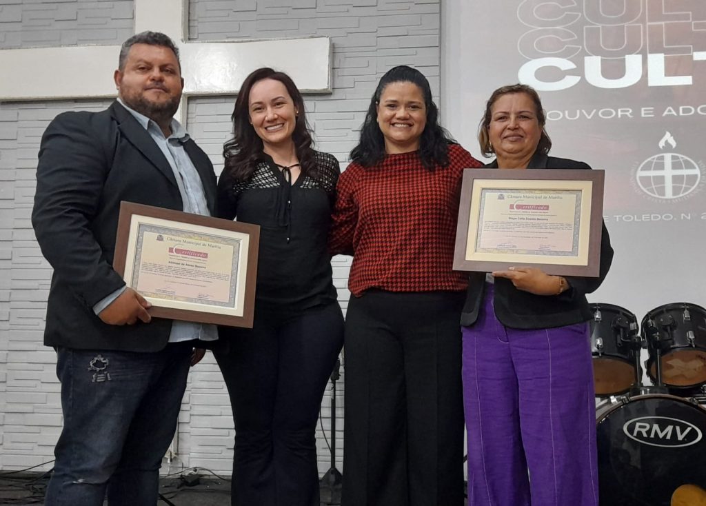 A vereadora Vânia Ramos, que em seu mandato na Câmara Municipal de Marília defende os valores cristãos e a proteção à família, reconheceu com votos de congratulações duas importantes lideranças evangélicas: a Bispa Célia Soares Bezerra e o Pastor Abimael de Abreu, responsáveis pela igreja cristã Mudança de Vida.