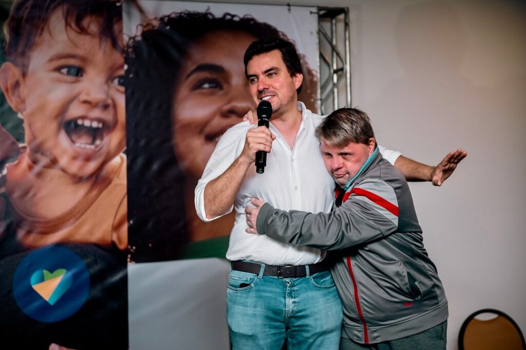 Ao lado de sua esposa Beatriz Vilela, o ex-prefeito mencionou sua mãe, Paula Almeida, e sua avó, dona Marilda, que estavam presentes na plateia. Além disso, interagiu com seus filhos.